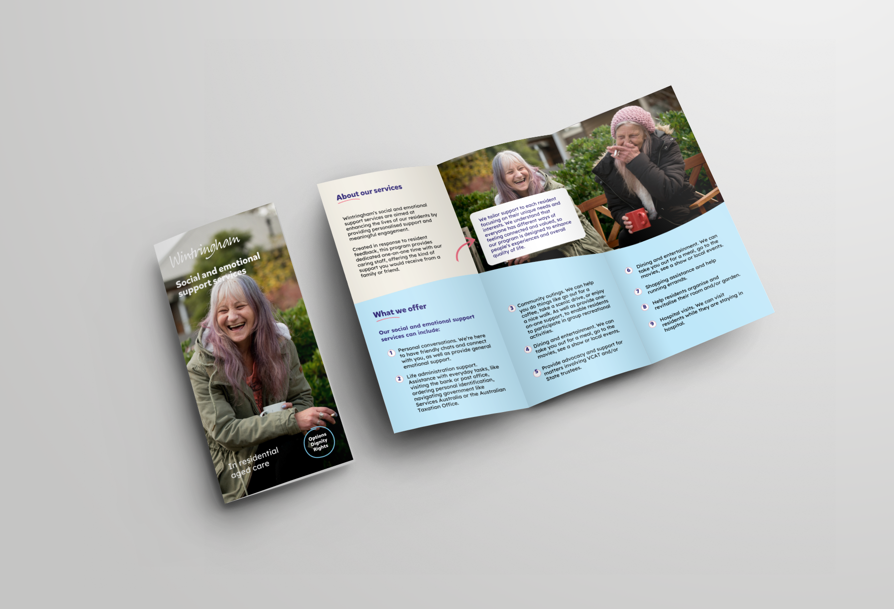 Brochure design to promote social and emotional support services.