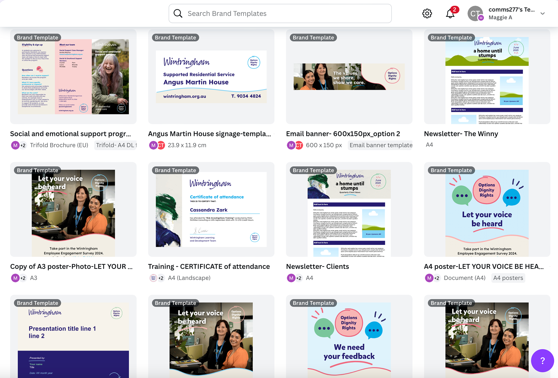 Project: I have the opportunity to collaborate with the marketing team from Wintringham Aged care providing design service to multiple stakeholders.
